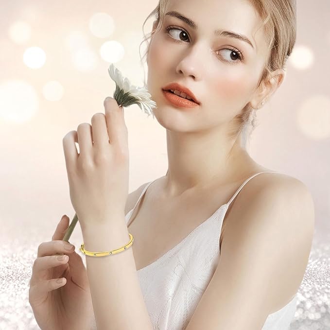 This Gold Hollow Two Tone Bangle bracelet is a perfect choice for all special occasions and parties. This diamond bracelet is already a gift for all events. The bracelet is a perfect gift as Valentine’s Day gifts, mother’s day gifts, New Year gifts, Christmas gift or a simple Thank you gift or thinking of you gift. The composition makes this women's bracelet diamond extremely tough making it suitable for everyday use.
