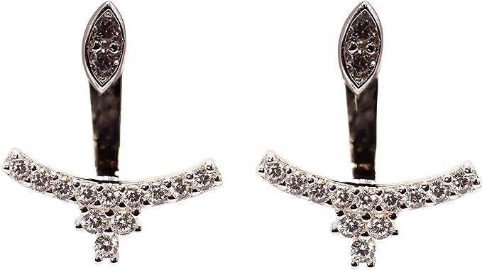 Crafted by superb craftsmen, these cute jacket earrings offer a unique twist to your collection. The delicate style showcases over forty simulated diamonds on a band of elegantly twisted sterling silver stud earrings. Not only an excellent choice as diamond earrings, but it also stands out as the perfect band to stack or wear on its own.