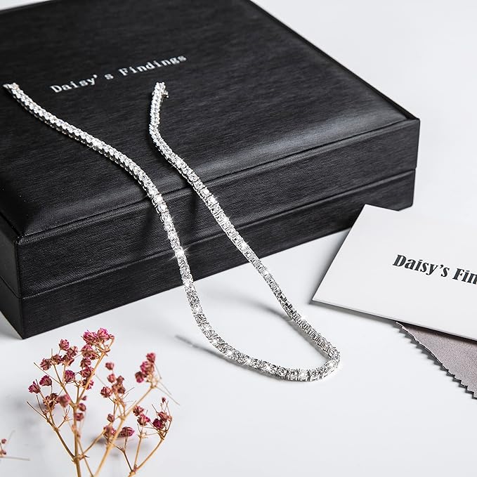 Sterling Silver Tennis Necklace | 22CT Diamond Necklace For Women
