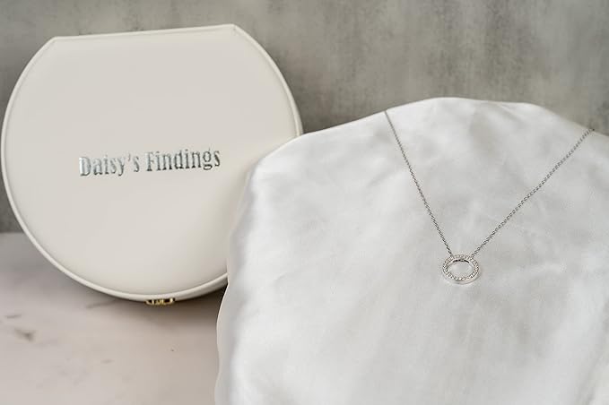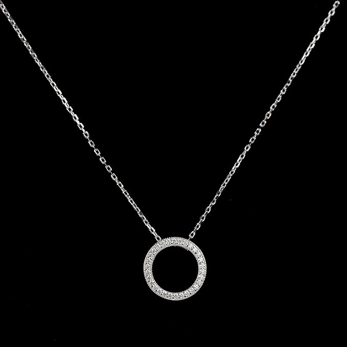 Elevate your style with our exquisite Moissanite Circle Diamond Necklace, a fusion of modern sophistication and timeless elegance. Crafted from solid 925 sterling silver, this stunning necklace for women features a high-quality carbon diamond with hypoallergenic and nickel-free properties. The main stone boasts a superb clarity of VVS1, radiating a brilliant luster that captivates admirers. To enhance its strength and shine, we've added a rhodium plating, ensuring this moissanite necklace complements various styles and dazzles when stacked.